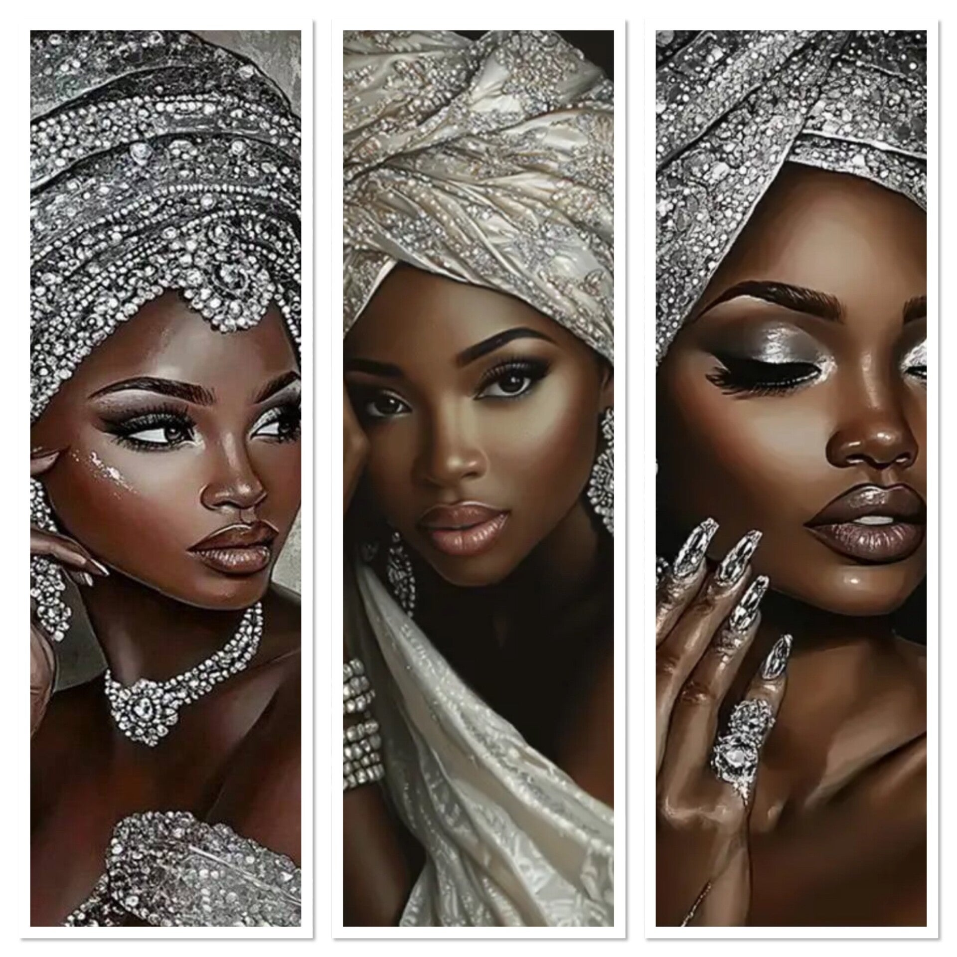 SURELIFE 3 pièces Portrait D'une Femme Africaine Moderne Avec Bandeau, peinture sur toile Pour Décoration Du Salon, Chambre À Coucher